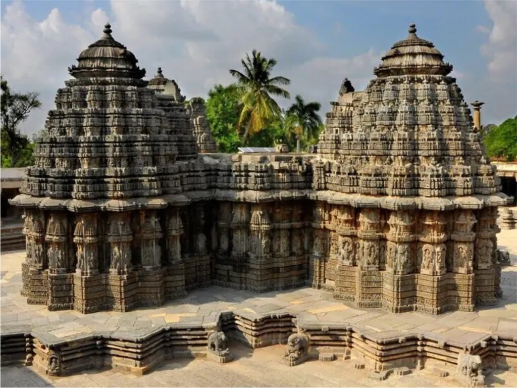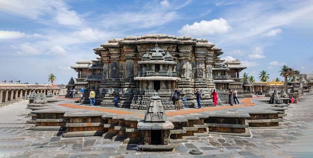 The temples of Belur and Halebidu, located in Karnataka, are architectural marvels of the Hoysala dynasty, showcasing the zenith of Indian temple art and craftsmanship. The Chennakeshava Temple in Belur, dedicated to Lord Vishnu, is celebrated for its intricate carvings, ornate pillars, and life-like sculptures depicting scenes from Indian epics like the Ramayana, Mahabharata, and Bhagavata Purana. Its star-shaped sanctum and detailed friezes are a testament to the Hoysalas’ ingenuity and artistic finesse. Similarly, the Hoysaleswara Temple in Halebidu, dedicated to Lord Shiva, features intricately carved walls, rich with depictions of celestial beings, dancers, and mythological stories. These temples are not just places of worship but living chronicles of medieval Indian history and culture.